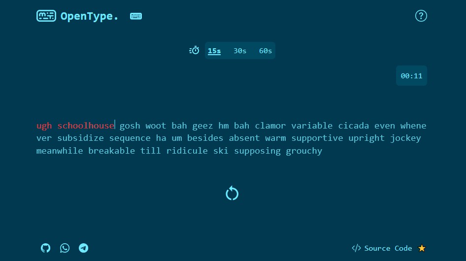 OpenType is a minimalistic typing speed testing app built with React and TailwindCSS that highly inspired by MonkeyType. The app allows users to test and improve their typing speed and accuracy. The app provides a user-friendly interface and intuitive feedback on typing performance.