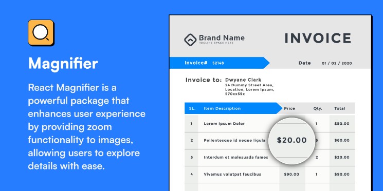 A React package allows you to implement Magnifier for images