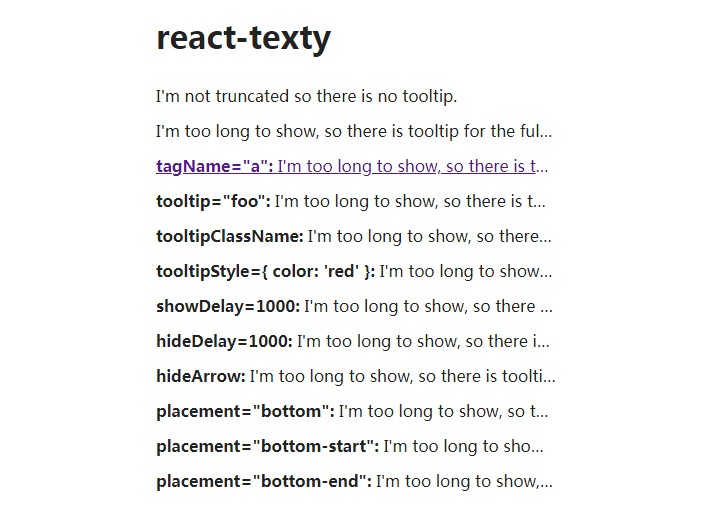 nodeTooltip for the truncated text if set, or the children will be used - tooltipClassName