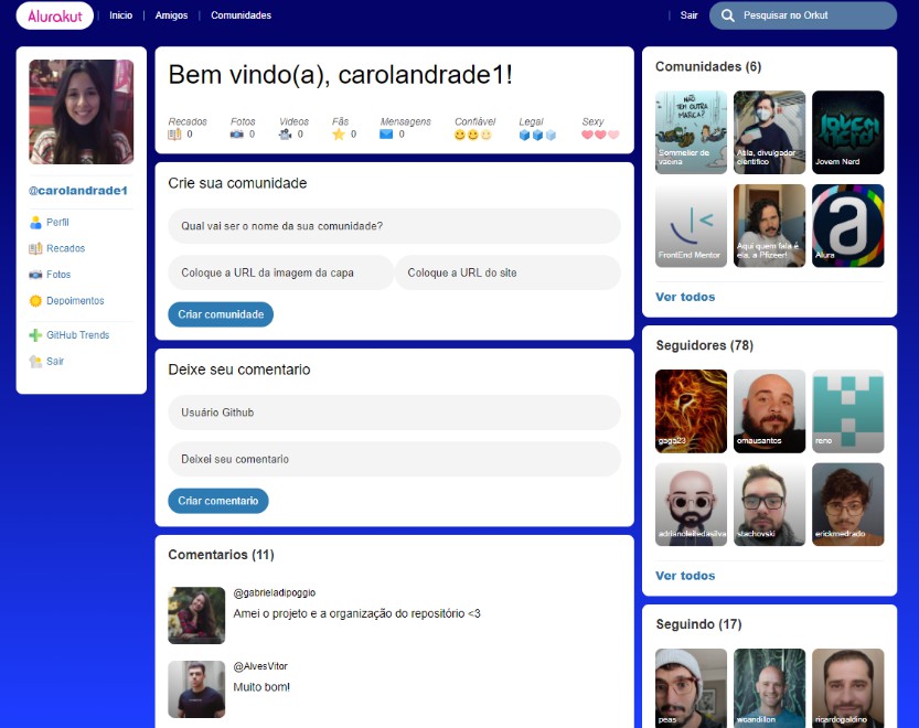 $ git clone https://github.com/carolandrade1/alurakut.git && cd alurakut