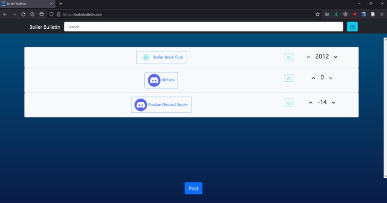 An online forum for Purdue students to post, view, and filter GroupMes, discord servers, and other online communities