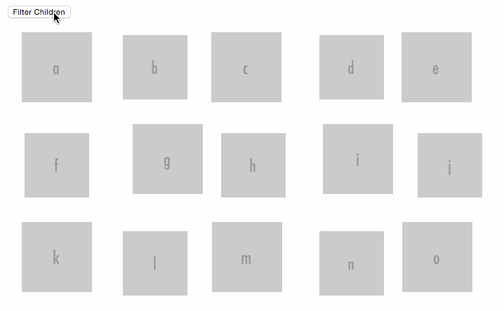 Simply wrap child components with this component and dynamically change them to see them animate. The only real requirement is that each child has a non-index based key, for proper position identification.