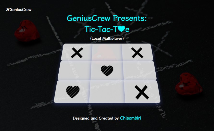 Link to design file here, designed by me: https://www.figma.com/file/1g7TmILCbxrrB58WZZC0Ai/GeniusCrew-Tic-Tac-Toe?node-id=0%3A1