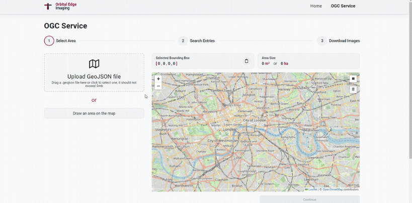 This is a proof-of-concept web application for a (fictional) startup called “Orbital Edge Imaging” that enables users to search the company’s API using a specified Area of Interest.