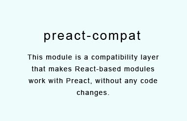 This module is a compatibility layer that makes React-based modules work with Preact, without any code changes.