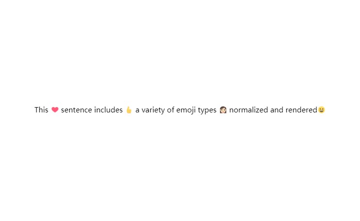 <MyEmojiRenderer text="This ❤️ sentence includes :+1: a variety of emoji types :)" />