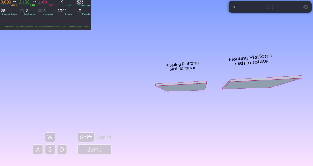 Simple web based character controller build on react-three-fiber and react-three-rapier. It provides a playground demo where you can experience the following features: